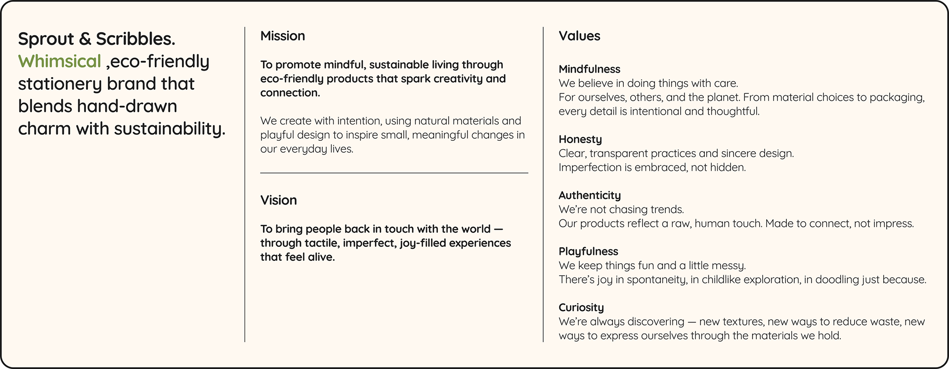 • Charcoal black with a warm cream background creates a strong visual foundation, with green used sparingly as an accent to emphasize eco consciousness